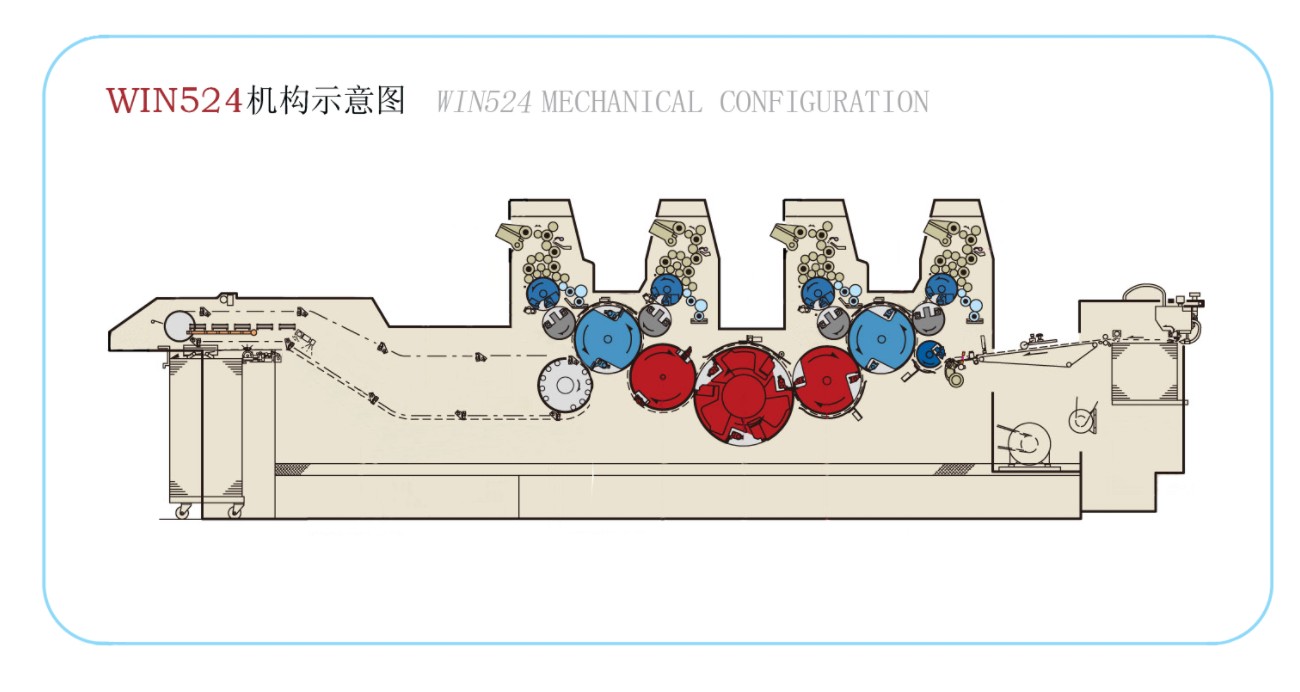 9) Việc sử dụng xi lanh lấy dấu đường kính đôi và xi lanh chuyển ba đường kính làm giảm số lần chuyển giấy và do đó cải thiện độ chính xác của việc đăng ký giấy.